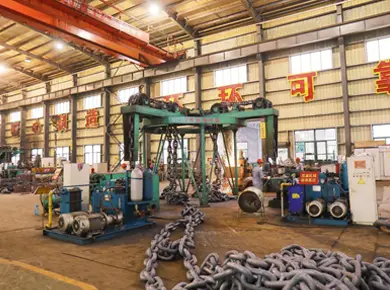 Gamykloje yra tarptautiniu mastu pirmaujanti intelektualioji automatinės grandinės gamybos linija tiek laivų inkarų grandinėms, tiek jūros inžinerijos švartavimo grandinėms, turinčioms visą įrangą fiziniam ir cheminiam produktų ir centrų tyrimams ir plėtrai. It is capable of producing U2 and U3,studded and unstudded anchor chains with diameters ranging from 14 MM to 122 MM, as well as offshore engineering mooring chains and various accessories supporting the aforementioned anchor chains, in accordance with international standards ISO1704 and national standard GB/T549-2017.We have obtained Certificates of Works Approvalfrom 8 internationally Garsios klasifikavimo draugijos: Kinija (CCS), Jungtinė Karalystė (LR), Norvegija (DNV), JAV (ABS), Prancūzija (BV), Japonija (NK), Pietų Korėja (KR), Italija (Rina) ir Rusija (RS). Mes esame garsus prekės ženklo produktas Zhoushane mieste, o metinė produkcija iki 50 000 tonų.